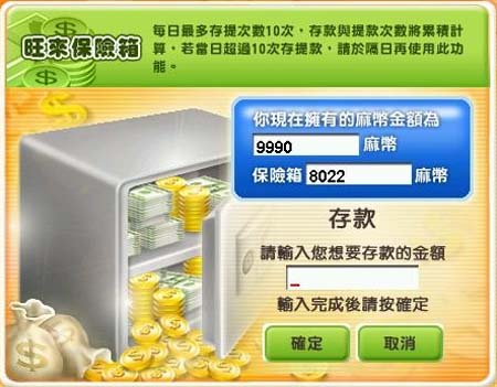 步驟四、輸入您所要存款的麻幣數量,並且按下確認按鍵。